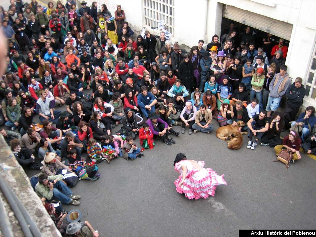 Assemblea, festa, actuació de circ. Ocupes de Can Ricart.