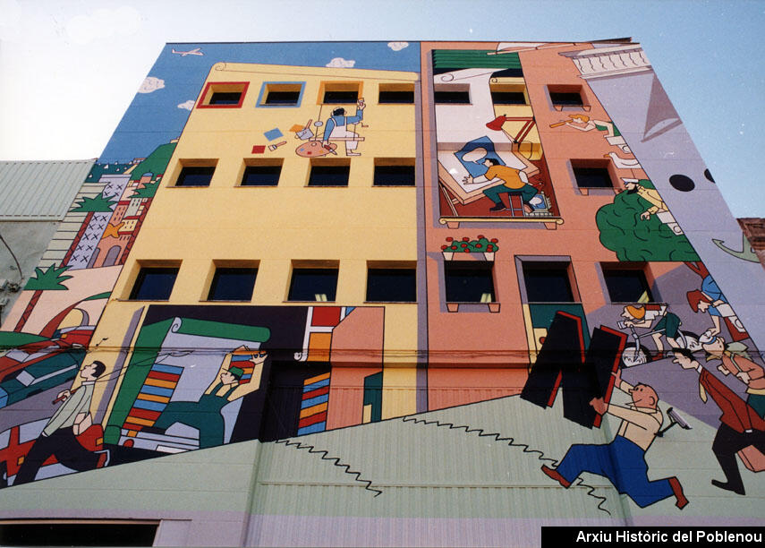 Edifici de NORMA CÒMICS. Detall dels dibuixos de la façana.