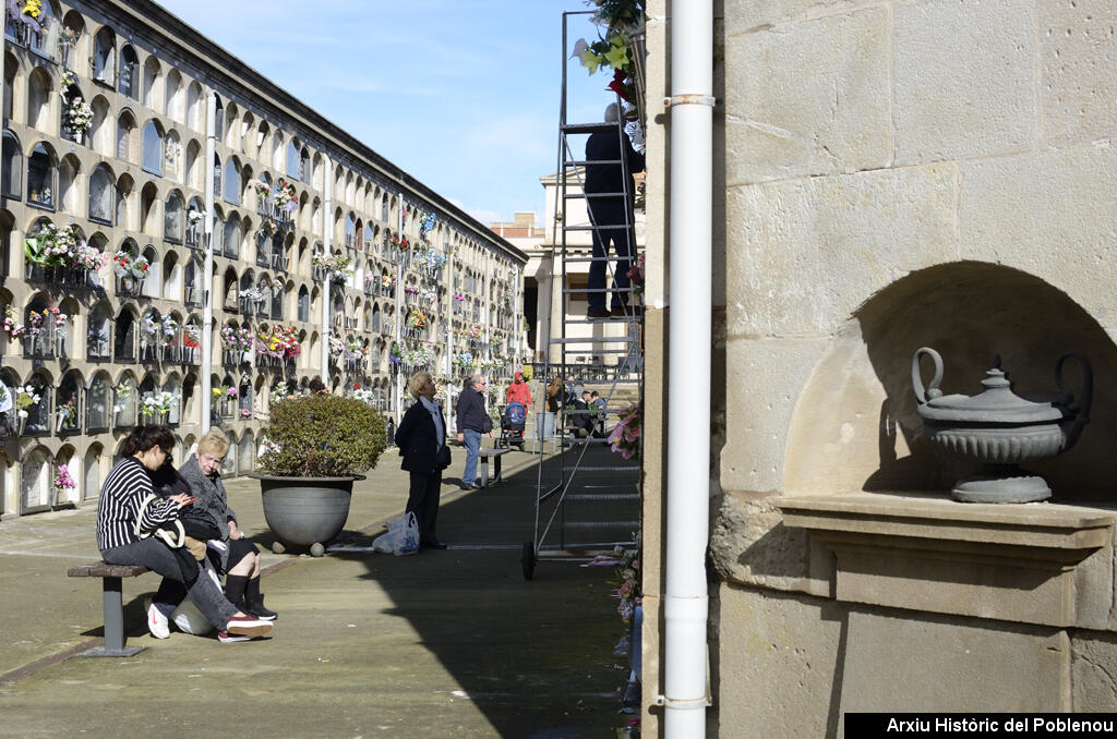 Cementiri de l'est, vell o del Poblenou. Diada de Tots Sants. Ofrena de flors. Llàntia egipcia.